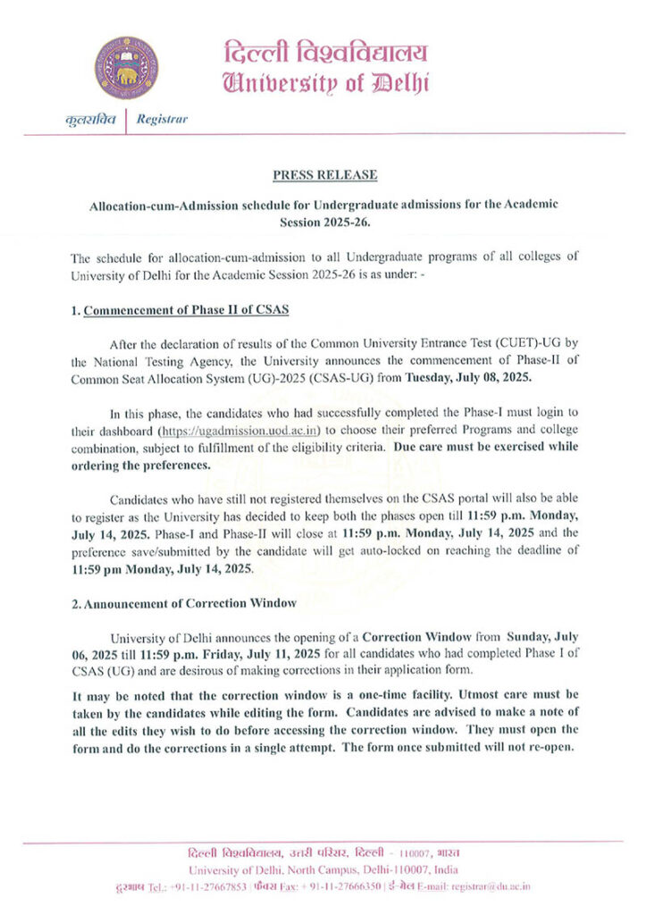 | Candidates to apply for Admission against 5thCut-Off | 10:00 am 9th Nov (Tuesday) – 11:59 pm 10th Nov (Wednesday) |
