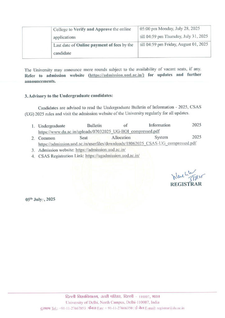 | Last day of payment by candidates against 4thCut-Off | 5:00pm 6th Nov (Saturday) |