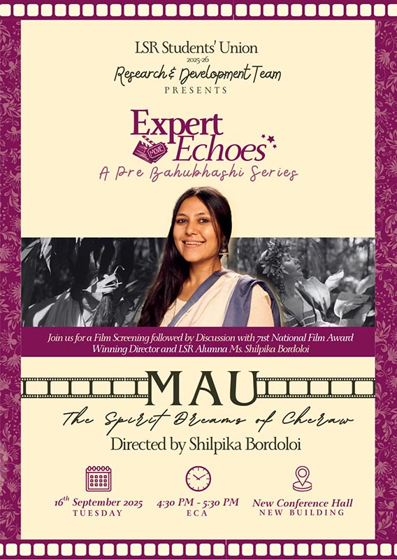 The Students’ Union under *Project Bahubhashi* had the honour of hosting Lady Shri Ram College alumna and National Award-winning multidisciplinary artist, Ms. Shilpika Bordoloi, for the screening of her acclaimed film Mau: The Spirit Dreams of Cheraw on Wednesday, 16 September 2025.