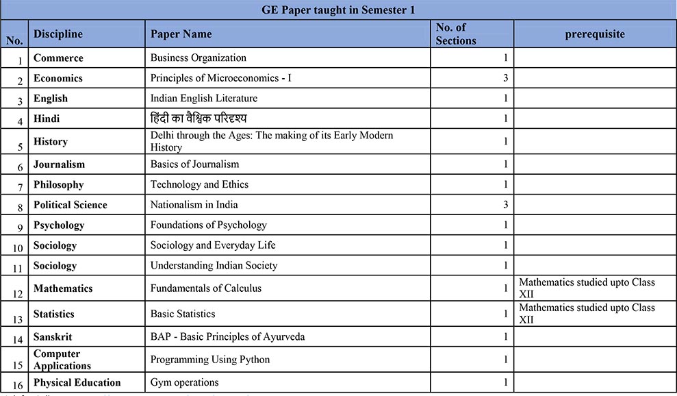 GE Paper taught in Semester 1