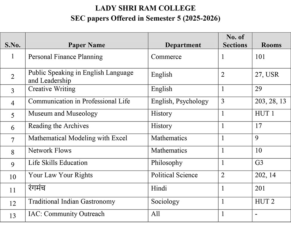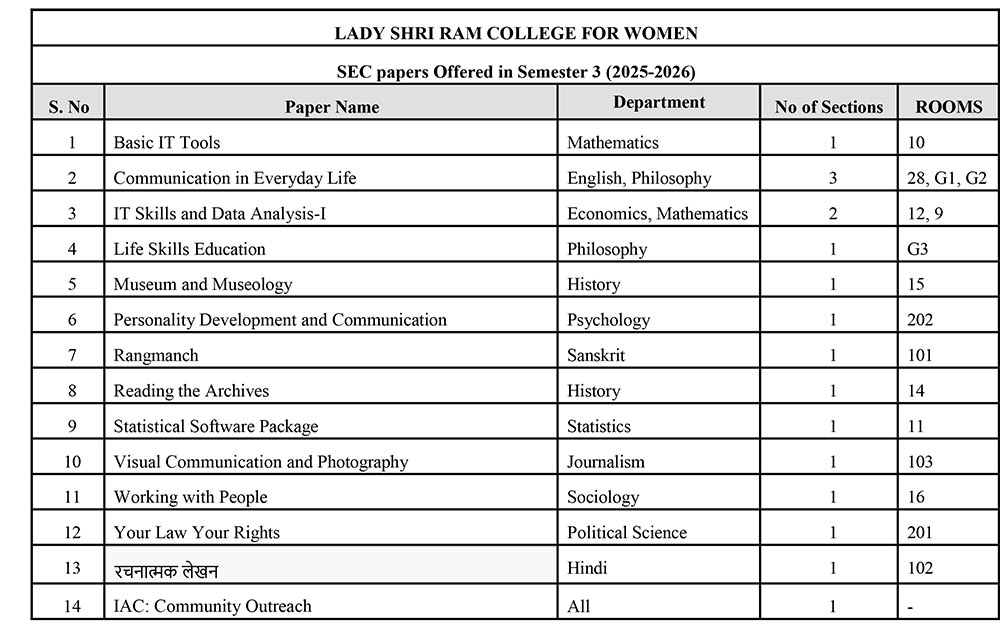 SEC papers Offered in Semester 3 (2025-2026)