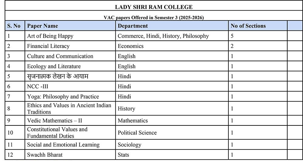 VAC papers Offered in Semester 3 (2025-2026)