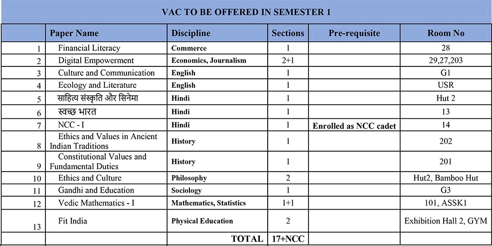 VAC To Be Offered in Semester 1